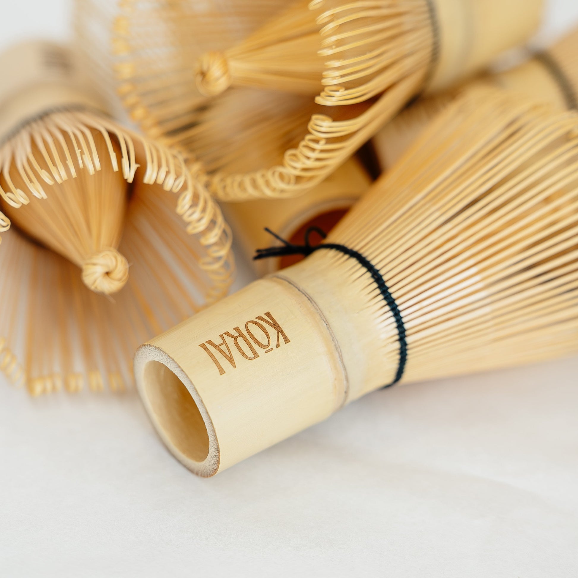 El chasen es el batidor que se ha utilizado durante siglos en Japón para preparar el matcha de forma correcta. Está elaborado artesanalmente a partir de una sola pieza de bambú, tallada cuidadosamente para crear múltiples cerdas finas que permiten mezclar el té con el agua de manera suave y uniforme.